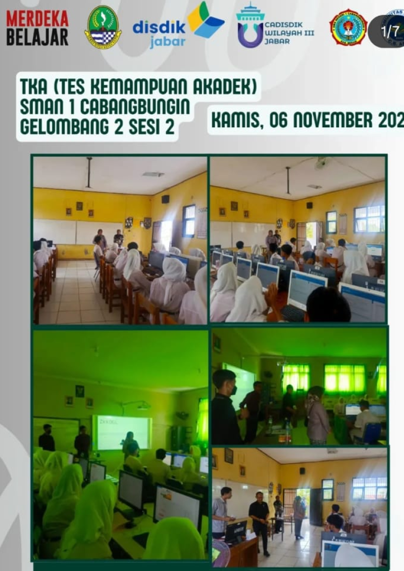 SMAN 1 Cabangbungin — Sekolah melaksanakan Tes Kemampuan Akademik (TKA) Tahun 2025 yang diikuti oleh seluruh peserta didik kelas XII. Kegiatan ini berlangsung selama empat hari, mulai 3–6 November 2025, dan dibagi menjadi dua gelombang untuk memastikan pelaksanaan ujian berjalan tertib, nyaman, dan sesuai standar.