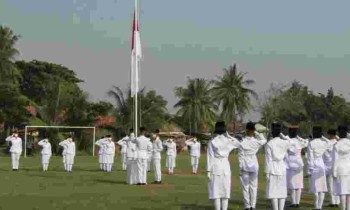 Upacara peringatan HUT ke-76 RI untuk wilayah Kecamatan Cabangbungin digelar di halaman Desa Sindangjaya Merdeka dan juga disiarkan di akun YouTube Sepuluh Pemuda, Selasa (17/8/2021). Saat bendera dikiba ...
